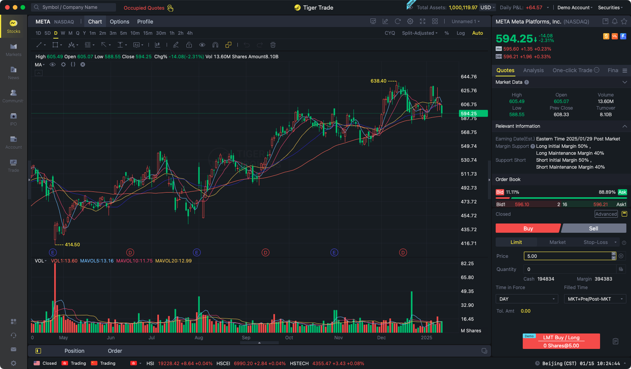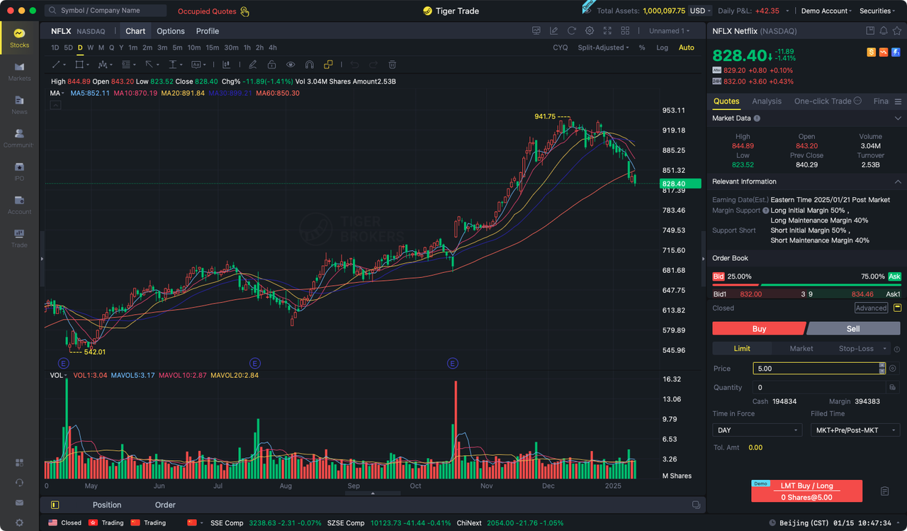 Free Real-Time Quotes: With USTiger Trade, you can stay informed with free access to real-time market data, making investment decisions based on up-to-the-minute information without the extra costs.