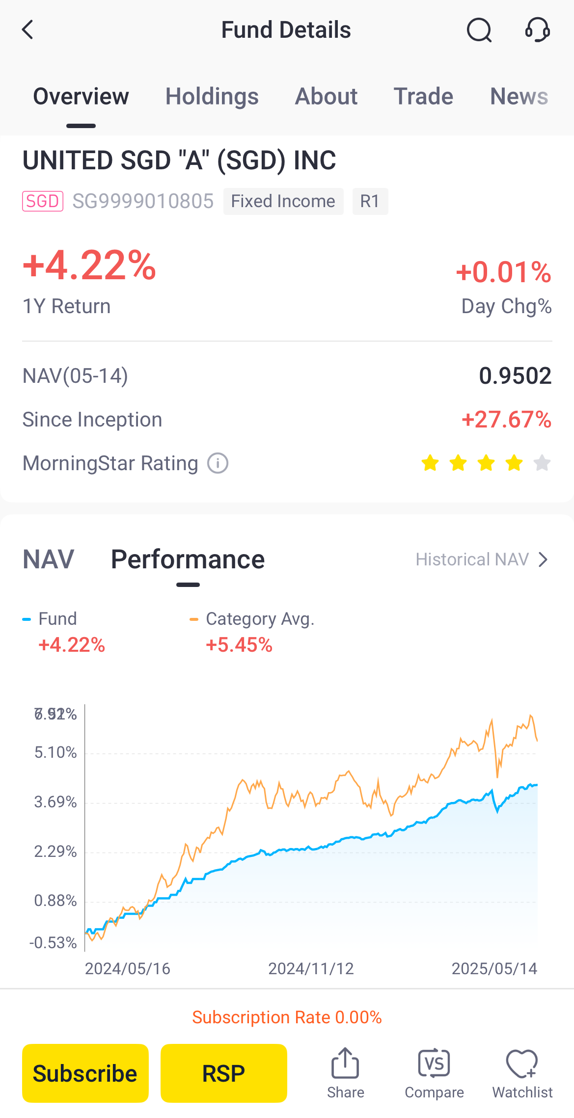 This fund is provided by UOB Asset Management, which primarily invests in short-term instruments and interest-bearing debt securities. Over the past year, its annual yield exceeded 4%*. Additionally, the fund does not charge subscription or redemption fees, which may enhance cost efficiency for investors.